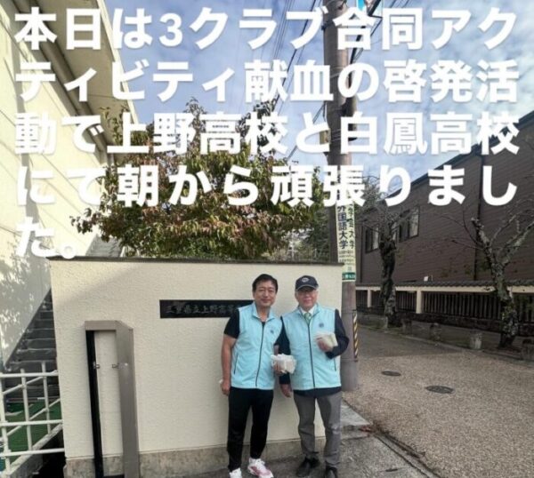 本日は早朝より3LC合同アクティビティ献血啓発活動 於)上野高校・白鳳高校にて行いました。皆様お疲れさまでした。